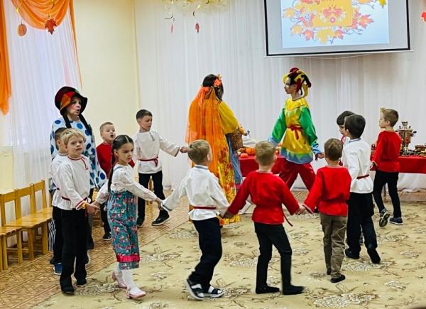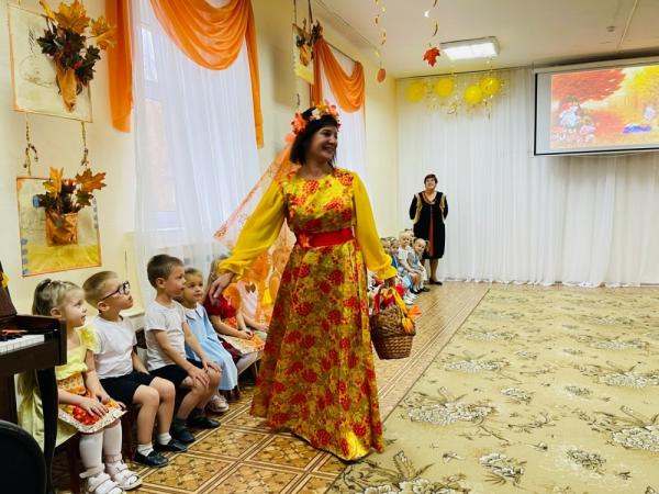 Во время праздников дети встретились с интересными персонажами - Осень, Скоморохи, Лесовичок, Дед Урожай, играли в "осеннем лесу" - собирали листья и грибы, водили хороводы, пели песни, читали стихи об осени.