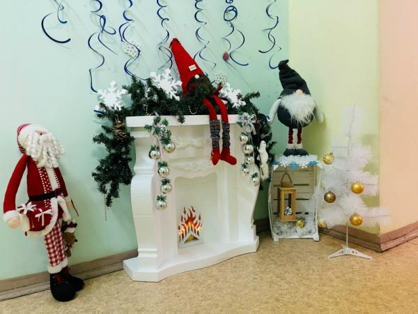 С целью создания новогоднего настроения на главном стенде детского сада размещена выставка детских творческих работ "Новогодние фантазии", фотозона "У Камина", "Почта Деда Мороза".